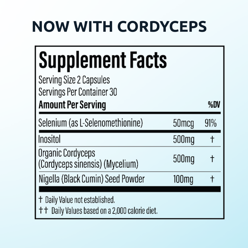 Organic Cordyceps (500 mg): Cordyceps sinensis mycelium, a medicinal mushroom that supports immune modulation.