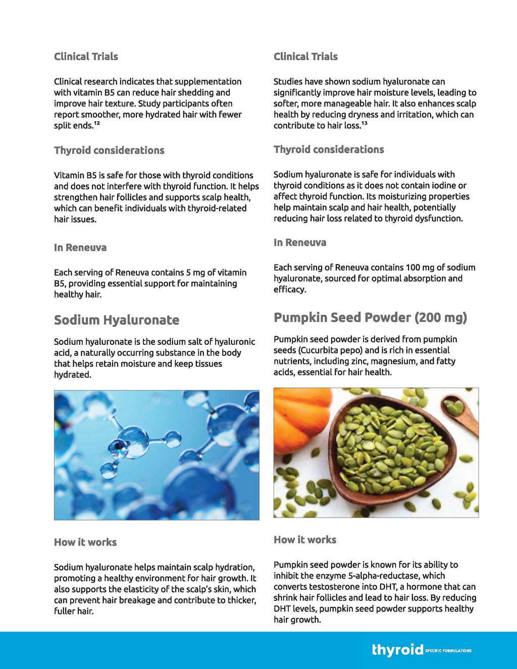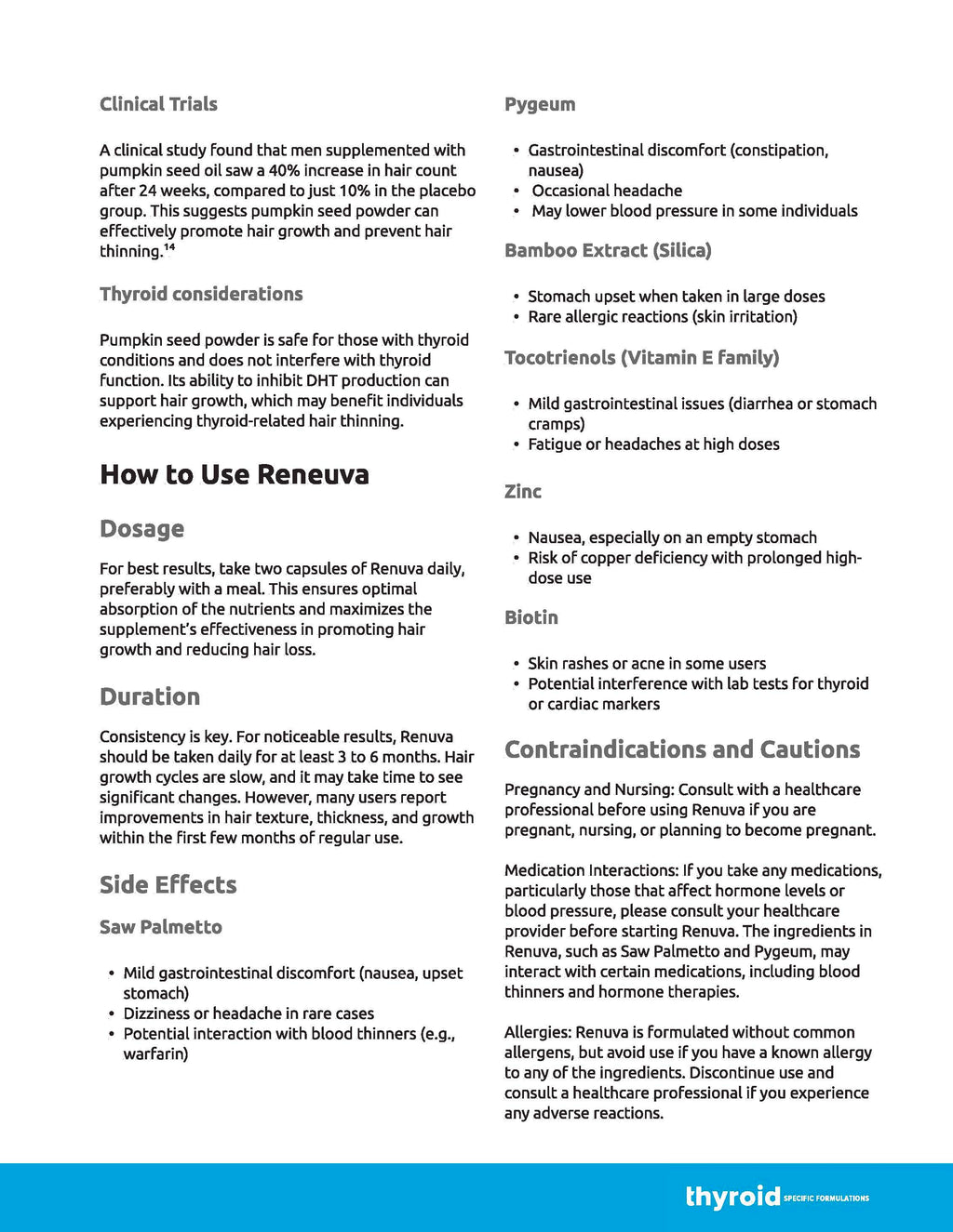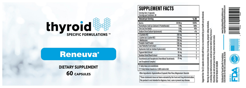 Unlike generic hair supplements, Reneuva is specifically formulated to address the unique challenges of thyroid-related hair loss, promoting healthier regrowth and stronger, more resilient hair.