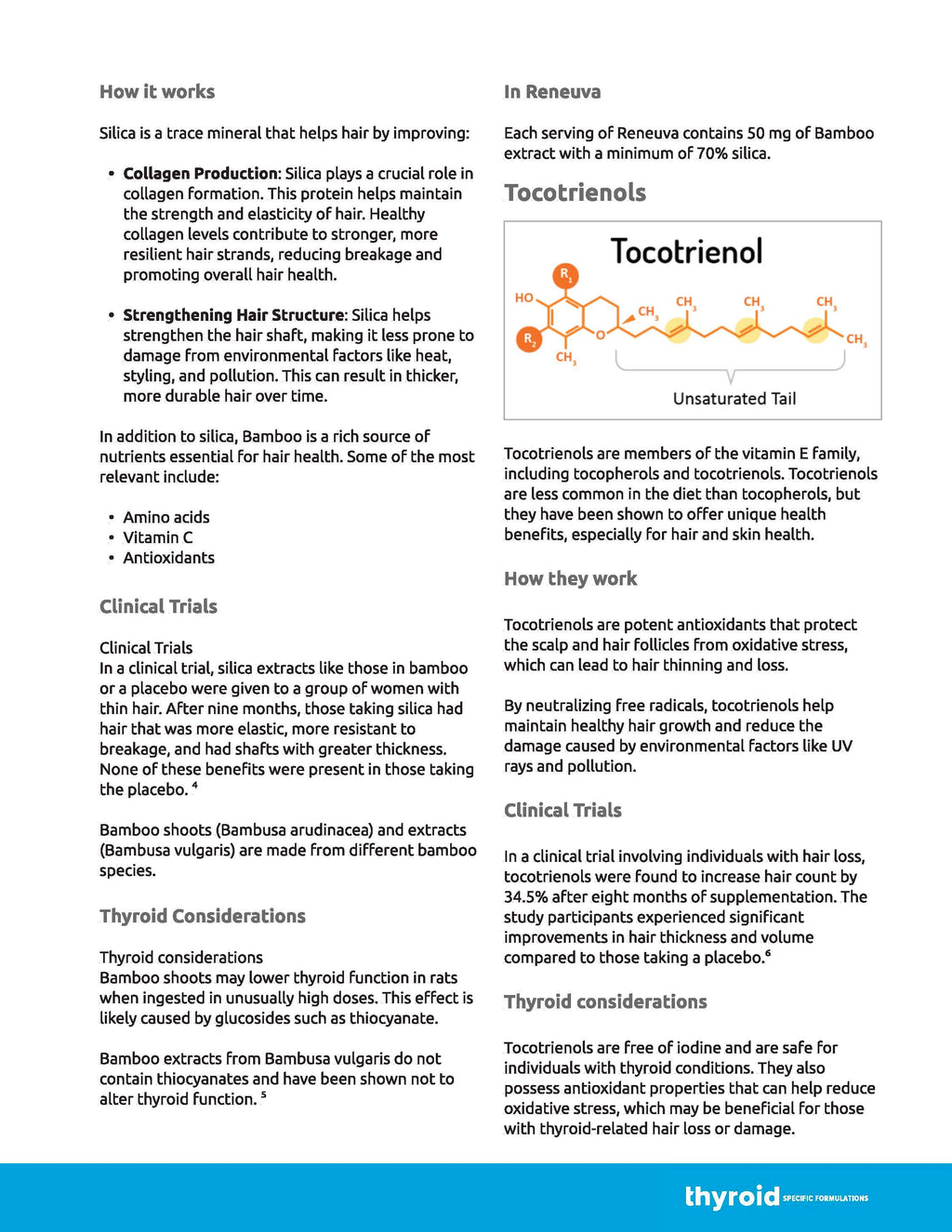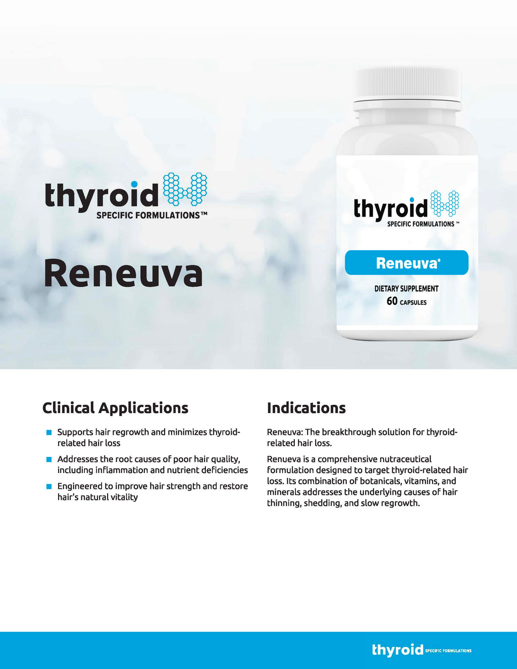 Reneuva is a cutting-edge nutraceutical designed to address the root causes of thyroid-related hair loss, thinning, and slow regrowth. Featuring a clinically researched blend of botanicals, vitamins, minerals, and amino acids, Reneuva strengthens hair, minimizes shedding, and restores its natural vitality.