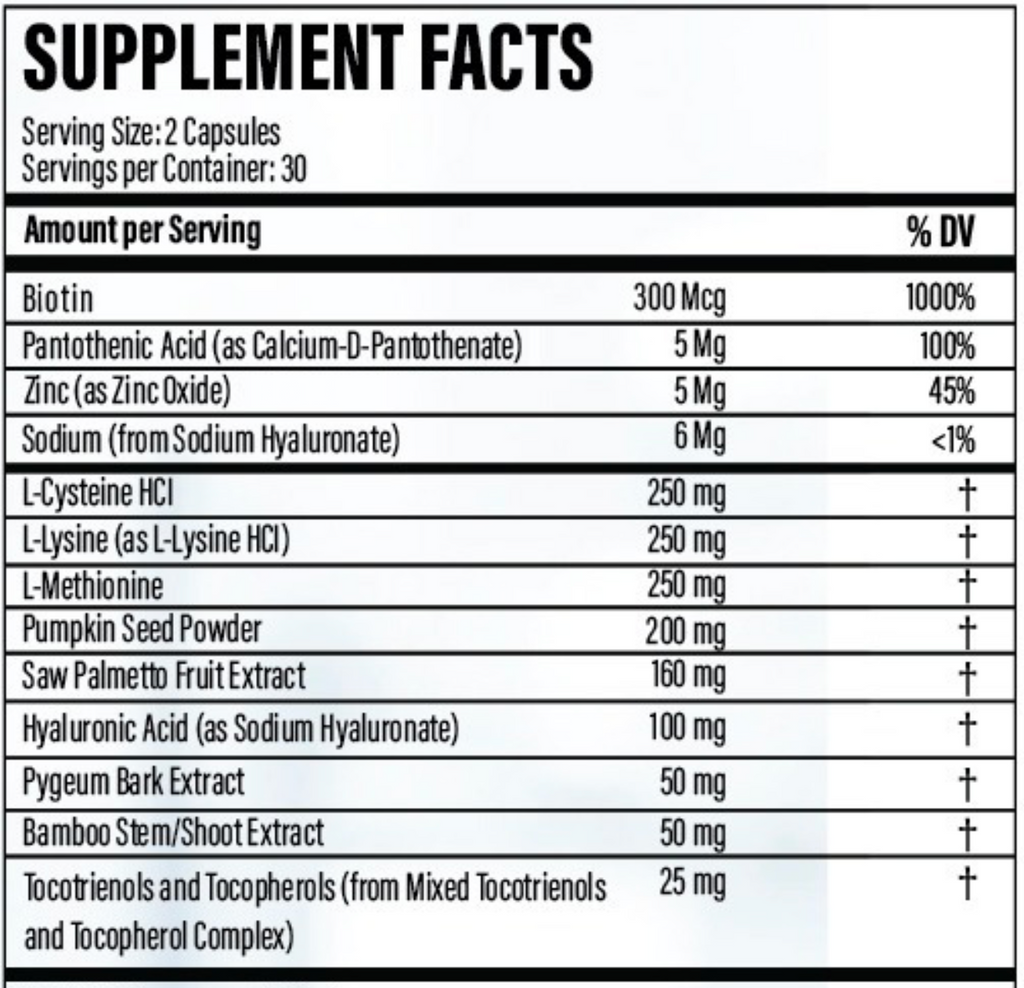Take two capsules daily with a meal. Consistent use for 3–6 months is recommended for optimal results, as hair regrowth is a gradual process.
